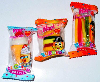 ハンバーガーやホットドックの形をした、パーティー向けのグミです。