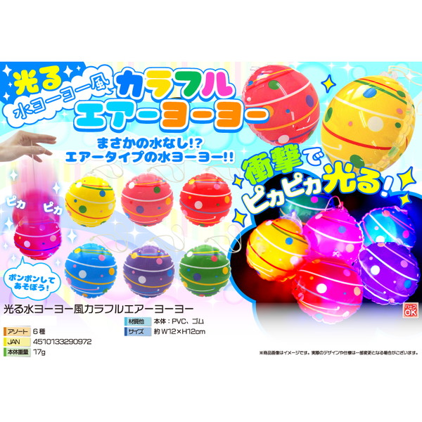 まさかの水なし!?エアータイプの水ヨーヨー!光る水ヨーヨー風カラフルエアーヨーヨーです。