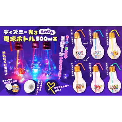 割れにくい素材だからイベントやお祭りにピッタリ!ディズニー光るピカピカ電球ボトル500mlです。