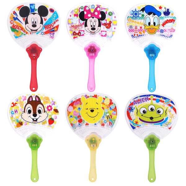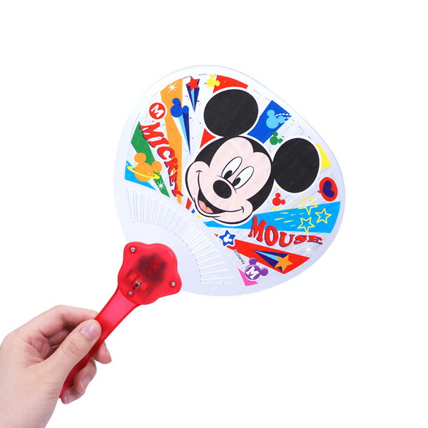ボタンを押すとピカピカ光る!赤、青、緑の光がいろんなパターンで点滅♪ディズニー光るうちわです。