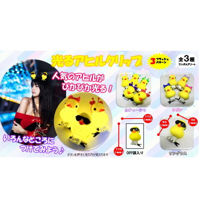 いろいろなところにつけてみよう♪人気のアヒルがぴかぴか光る!光るアヒルクリップです。