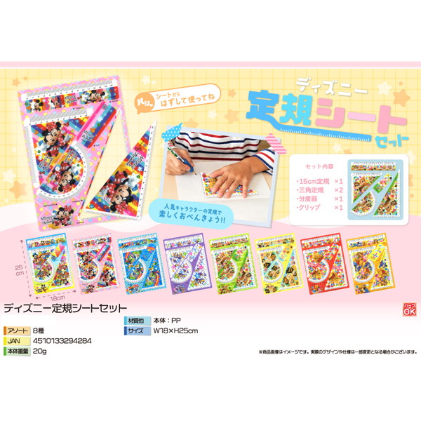 人気キャラクターの定規で楽しくおべんきょう!!ディズニー定規シートセットです。