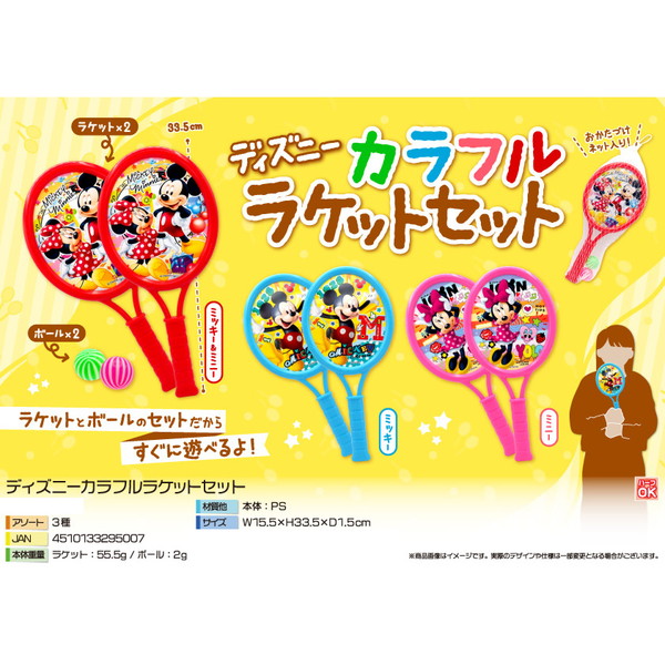ラケットとボールのセットだからすぐに遊べる!ディズニーカラフルラケットセットです。
