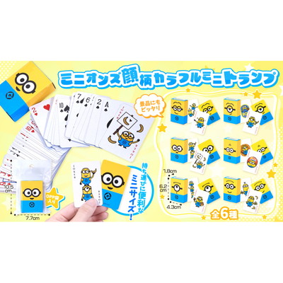 持ち運びに便利なミニサイズ!景品にもピッタリ!ミニオンズ顔柄カラフルミニトランプです。