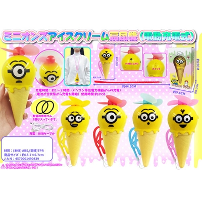 外でもお部屋でも大活躍!ミニオンズのキャラクター扇風機(電動充電式)が登場!持ち歩きにも便利なハンディ扇風機は充電式で、USBケーブル・首掛けストラップ・巻き込み防止用のヘアゴムが2個ついています。