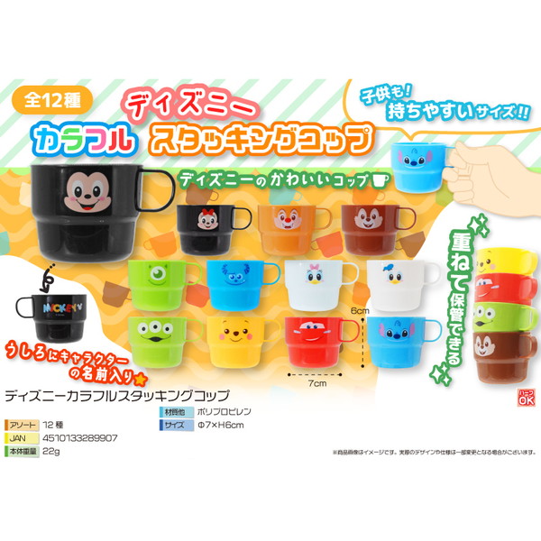 積み重ねて綺麗に収納できるディズニーカラフルスタッキングコップが12種で登場!