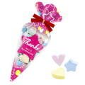 ホワイトデー限定!愛らしいハートの形にカットしたマシュマロを、感謝を伝えられるよう「Thanks」の文字をデザインし、赤いリボンを飾ったキュートなパラソル型のパッケージで包みました。 内容量40g