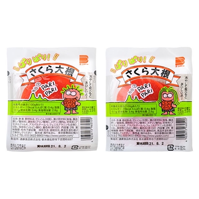 食物繊維の多い大根をお子様好みの甘酢漬に調味しピロー包装した駄菓子の定番です!内容量2枚