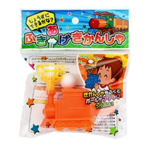 きかんしゃをふくとボールがフワフワうかぶよ!ふきあげきかんしゃです。