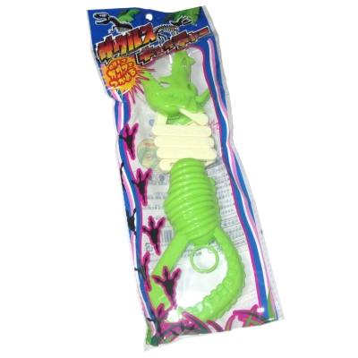 誰でも簡単!持ち手のワッカを引くと、ガブッと噛みつく!ザウルスキャッチャーです。