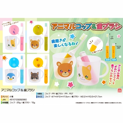 歯磨きが楽しくなるね♪アニマル柄のかわいいコップと歯ブラシのセット!アニマルコップ&歯ブラシです。