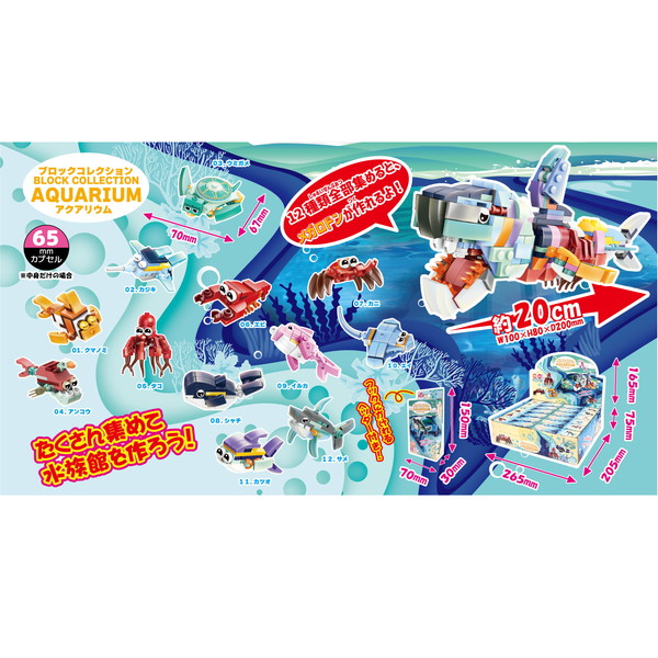 たくさん集めて水族館を作ろう!12全種類全部集めるとメガロドンがつくれるよ!ブロックコレクションアクアリウムです。