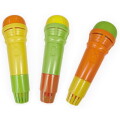 ロングセラー人気のミニサイズのマイク型おもちゃ♪内部の反響する構造がまるでマイクのエコーみたい♪ちびっこエコーマイクです。 サイズ(約):W50×D50×H150 3色アソート