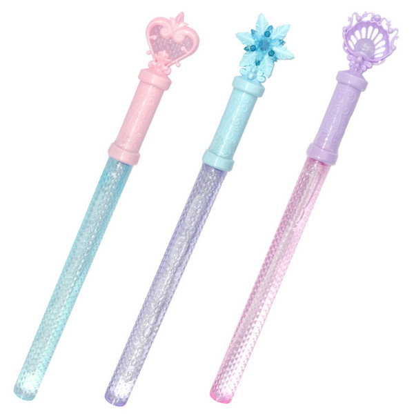 ライトを付けるとキラキラ光って魔法のステッキみたい♪ボトルはダイヤモンドカットでとってもきれいな光る!ファンシースティックシャボンです。