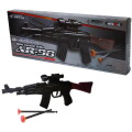 みんな大好き!吸盤ライフル・AR-98が登場!弾の先端に吸盤がついており、撃つとガラスや壁などの平らな場所にペタっとくっつきます。