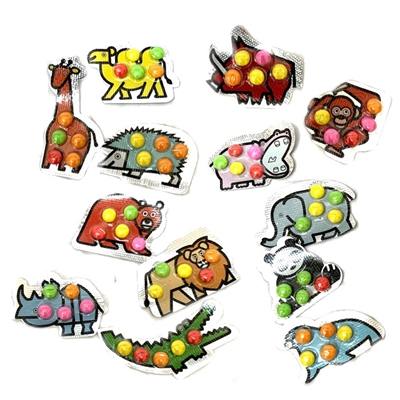 動物のキャラがかわいい!動物絵柄のシートにカラフルマーブルチョコが5つ入ってます!