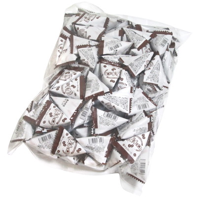 香ばしい麦ポップにチョコレートをコーティングし、テトラ包装にしています。内容量2g