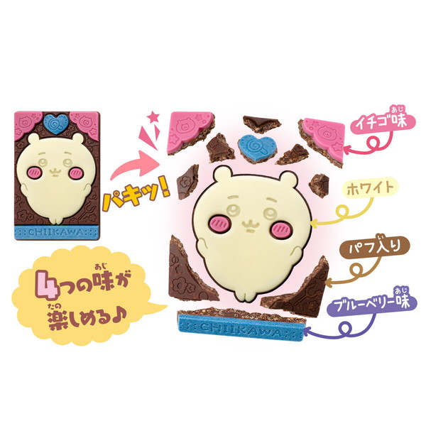 人気のイチゴ味、ブルーベリー味を含む4味のチョコレートで「ちいかわ」の世界観を表現したキャラパキです。チョコの形は全8種!